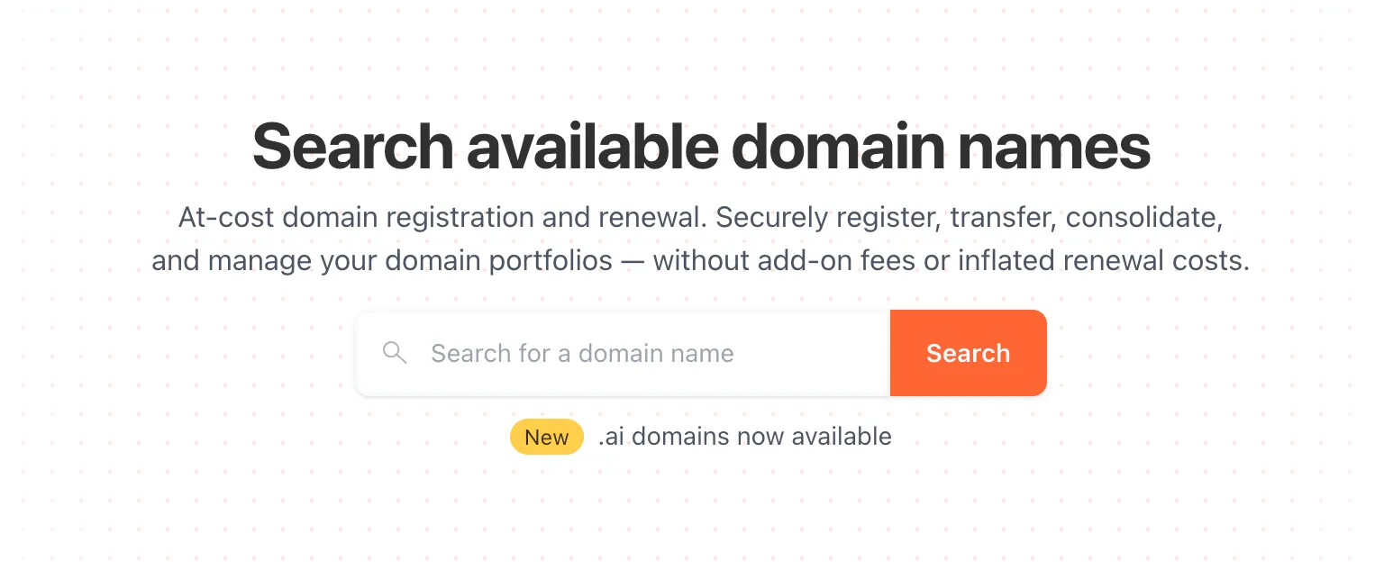 Section titled “Purchase a new domain name”If you don’t already have a domain name, it’s super easy to just buy one through Cloudflare. This is the easiest option, and will let you host your site on your new domain name right away.